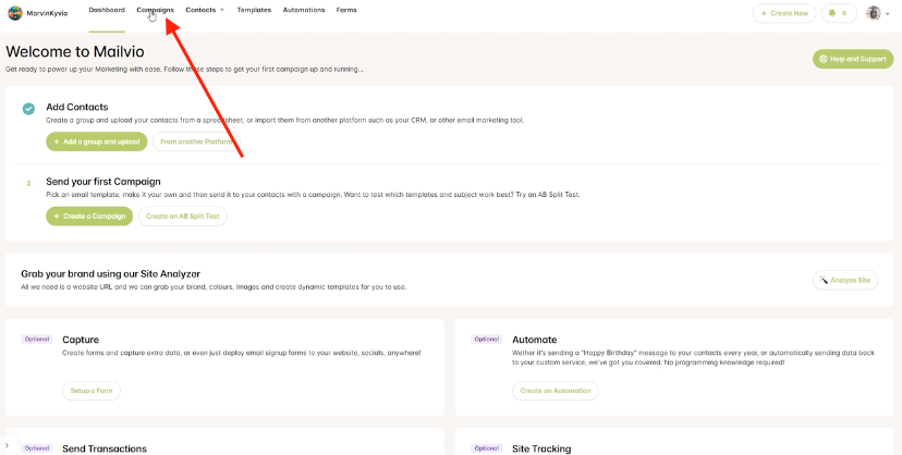 Step 2: From your Dashboard, click on the Campaigns tab.