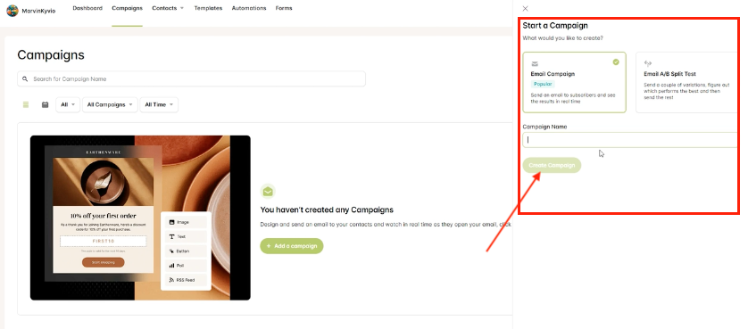 Step 4: Name your email campaign. Then click Create Campaign.