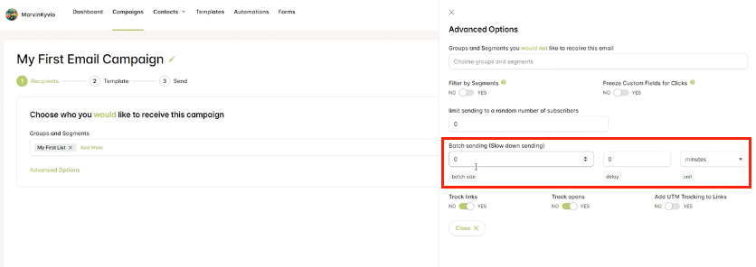 Step 6: You can also set the Advanced Options. Consider batch sending especially for your first email.