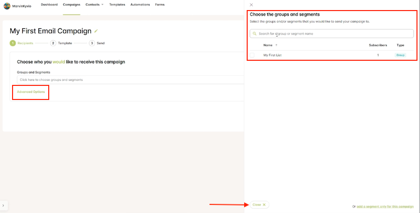 Step 5: Select the recipient. You can choose from segments and groups.