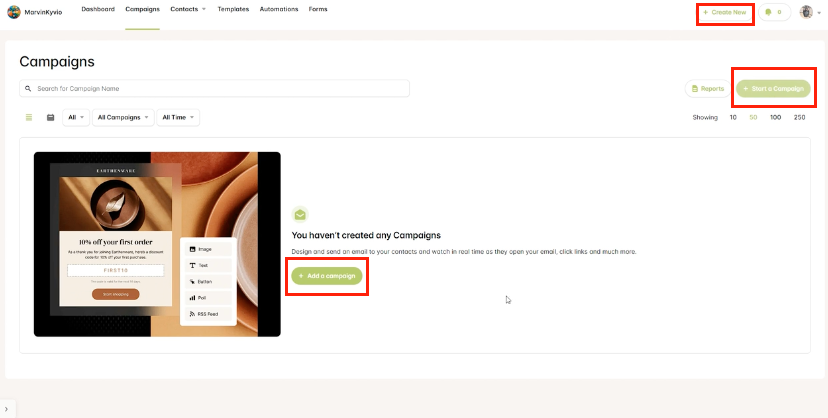 Step 3: Click on the Start a Campaign button.