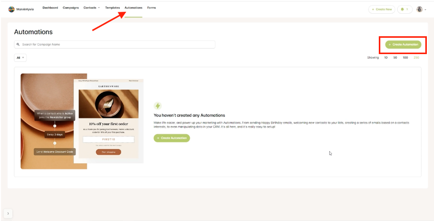 Step 2: Go to Automations tab and click on + Create Automation button.
